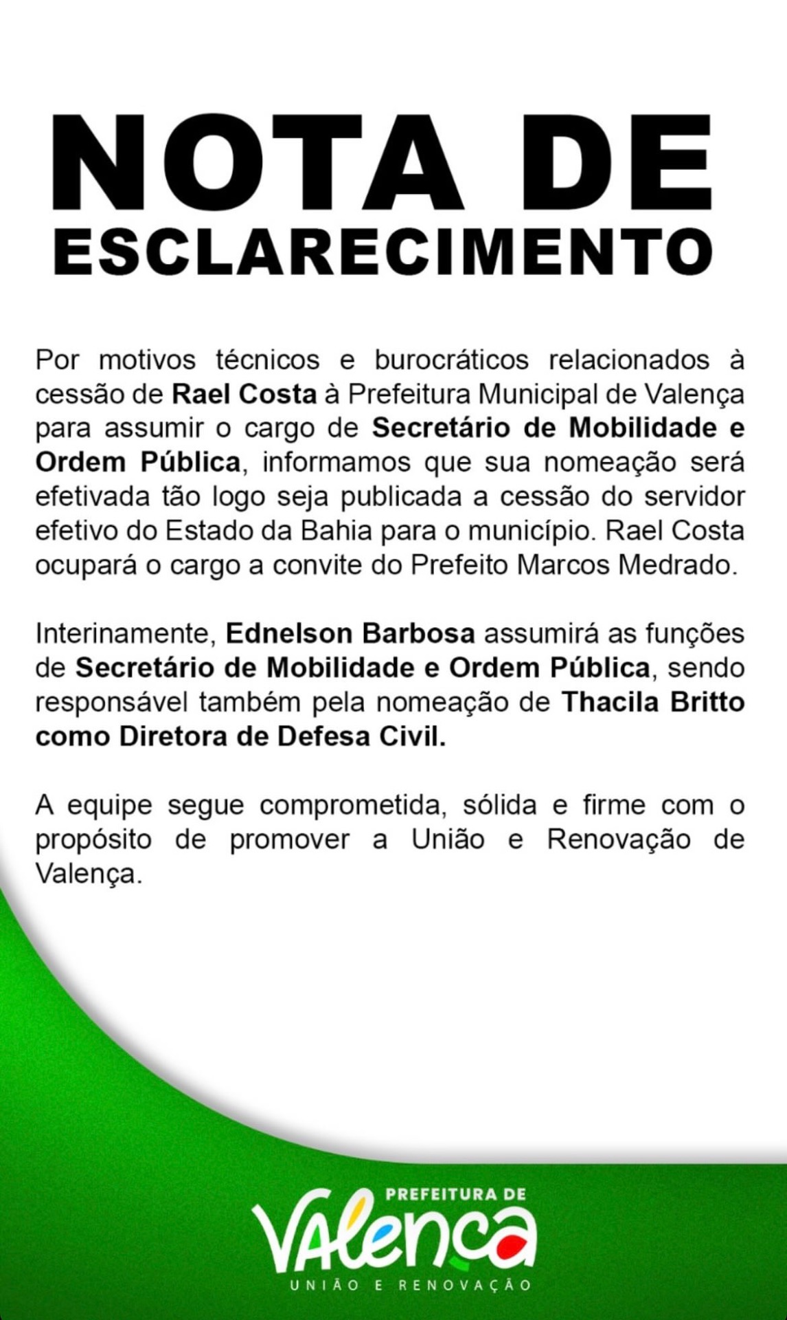 A população de Valença aguarda que as medidas adotadas pela nova gestão resultem em melhorias concretas na administração municipal, promovendo transparência, eficiência e o bem-estar coletivo.