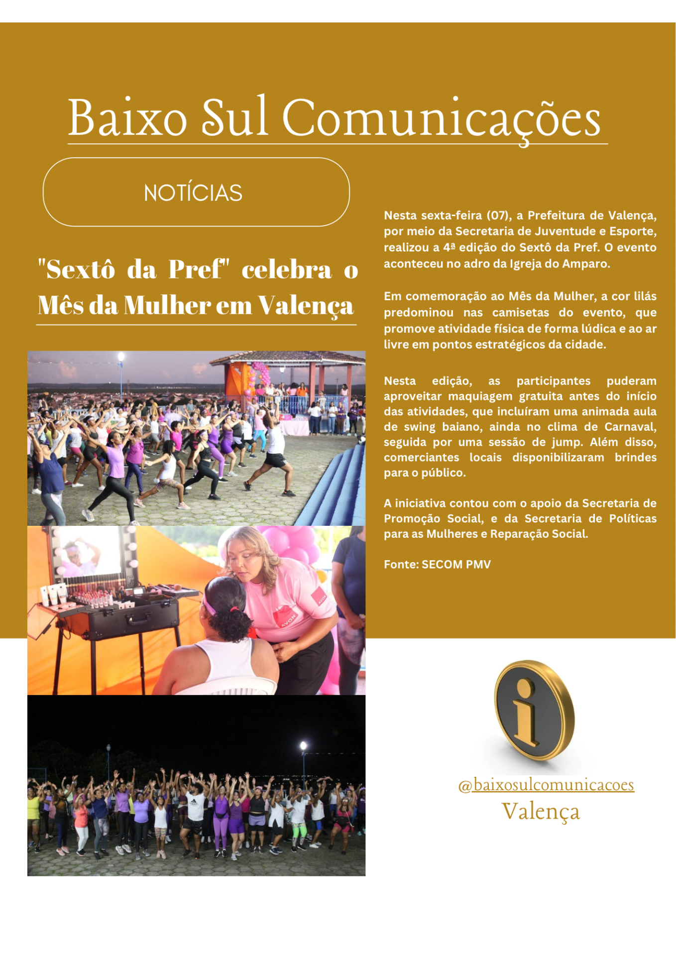 "Sextô da Pref" celebra o Mês da Mulher em Valença.