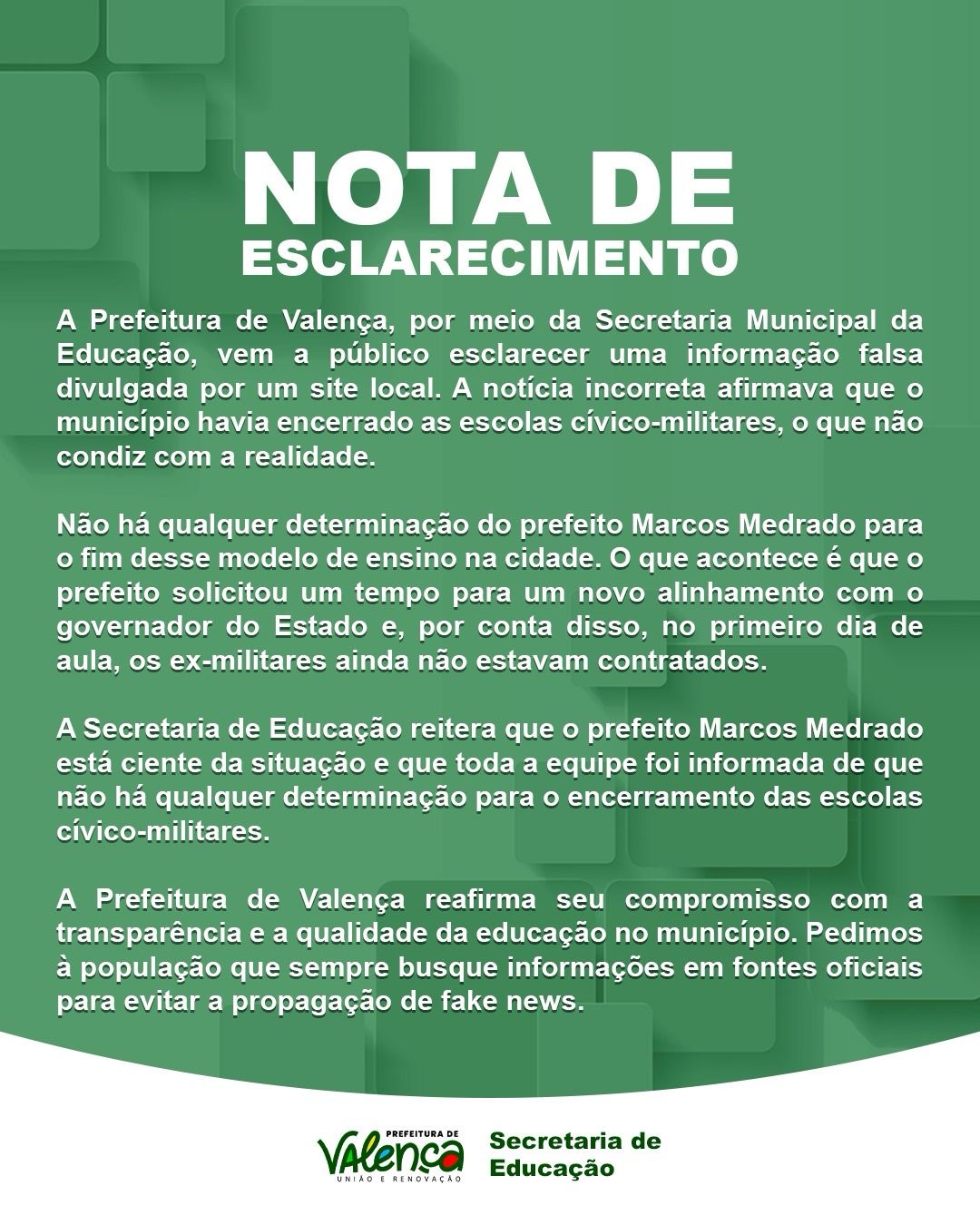 Reiteramos o convite ao diálogo com todos os envolvidos. Acreditamos que somente com união e colaboração será possível construir uma Valença mais forte e comprometida com a educação de qualidade. Pedimos que a população e os profissionais da educação acompanhem a discussão do Projeto de Lei 01/2025 com atenção e, sobretudo, com base em informações corretas.