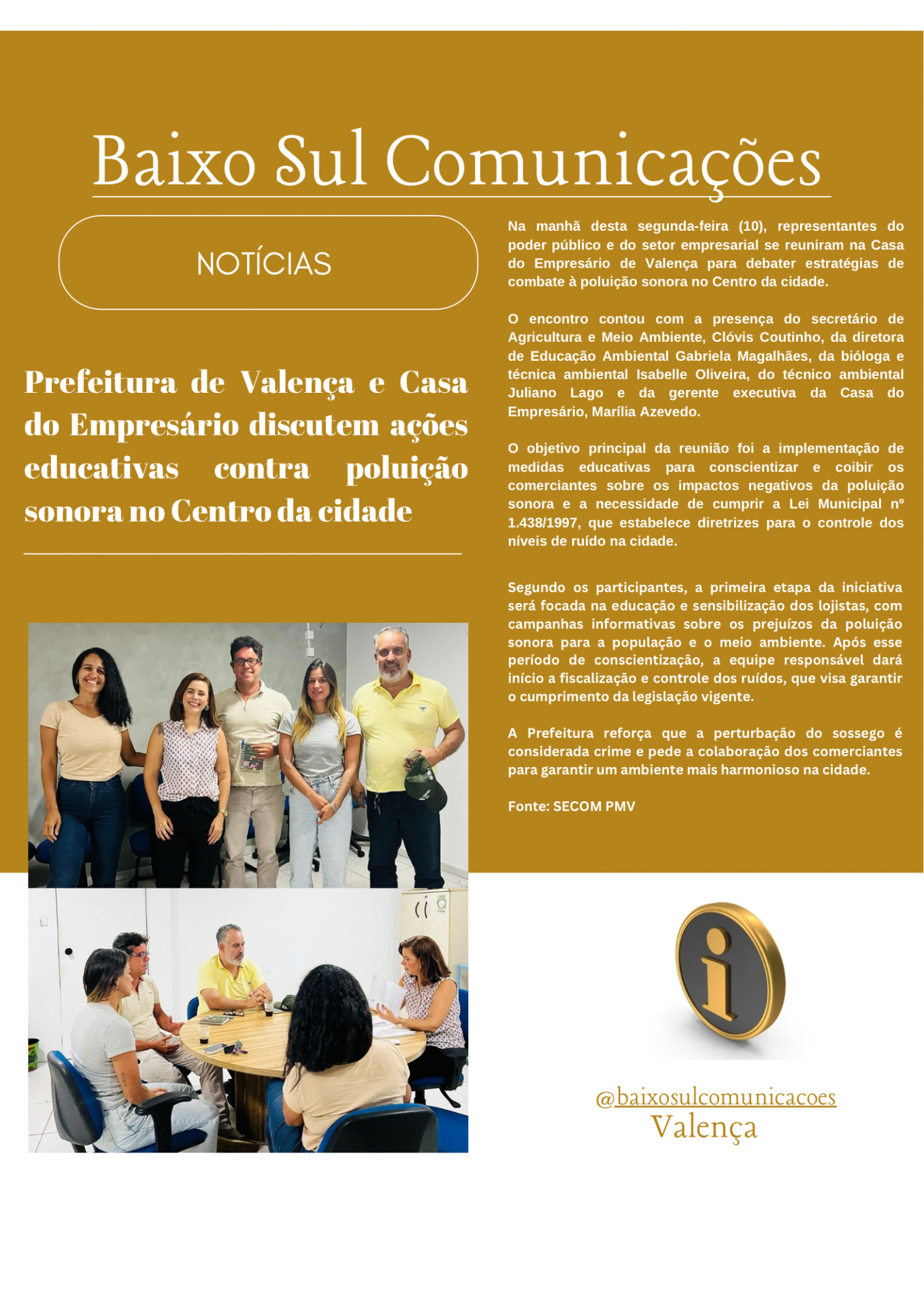 Na manhã desta segunda-feira (10), representantes do poder público e do setor empresarial se reuniram na Casa do Empresário de Valença para debater estratégias de combate à poluição sonora no Centro da cidade.